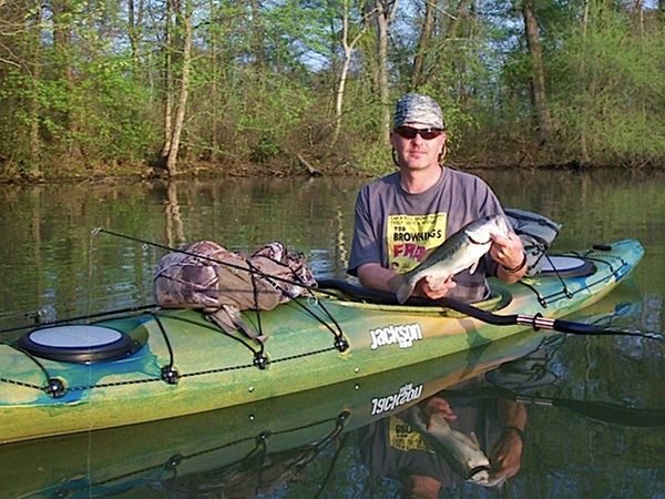According to Drew Gregory, a professional angler with Deep Creek Ventures, LLC and Jackson Kayak, SOTs are “nearly” unsinkable, making them excellent in rougher water, like in the surf. “SOTs do allow for internal storage since they are hollow inside,” Gregory adds.(Gregory is shown in the top right image as landing a fat smallmouth from his Jackson SOT)