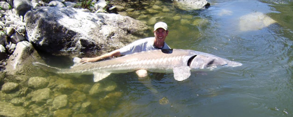 Prevalent in the Columbia River, the sturgeon is a primitive fish that has not changed substantially since it emerged millions of years ago. Sturgeon are a long-lived species, reaching five to six feet in length by the age of maturity. A few sturgeon in the Columbia River have been verified to be over 80 years old.