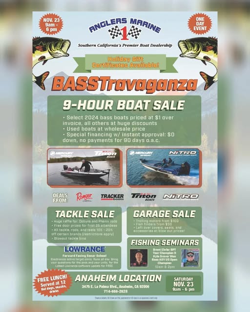 Come on out this Saturday (11/23/24) to Anglers Marine Anaheim to talk & shop bass fishing!