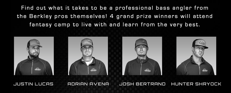 If you have been following Berkley on social media, you know that the Fantasy Fish Camp contest is in full swing. The contest has several different phases where fans can enter for a chance to attend a fishing camp with some of the best professional anglers in the country. Berkley pros Justin Lucas, Adrian Avena, Josh Bertrand and Hunter Shryock will attend the October camp with the four winners.