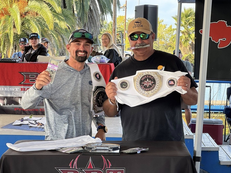 This year’s Tournament of Champions (T.O.C.) was on the California Delta and was won by Clayton and Brian Eslick with 38 pounds over two days of fishing.