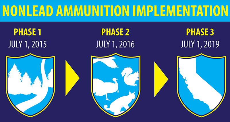 In October 2013, Assembly Bill 711 was signed into law requiring the phase-out of lead ammunition for hunting anywhere in the state by July 1, 2019. The law also required an implementation plan designed to impose the least burden on California's hunters while adhering to the intent of the law.