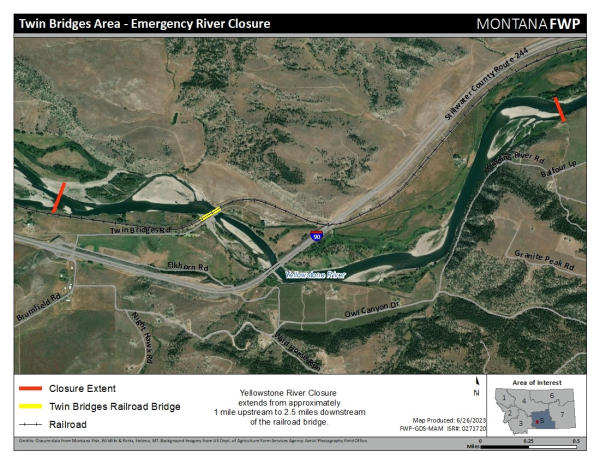 For the full notice of adoption of the emergency rule, visit https://fwp.mt.gov/public-notices/news/2023/jun/0627-yellowstone-river-near-twin-bridges-railroad-bridge-emergency-closure
