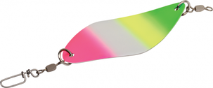 The Fast Limit™ Dodger produces flash and vibration that attracts Trout & Kokanee when rigged in-line ahead of lure, squid or bait, at troll speeds ranging from 1 to 2 MPH. Available in two sizes, 3-3/4 (size #5) and 5” (size #000), this product features solid-brass construction, welded ring attachments, quality swivels, and handy snap that allows for quick leader changes.