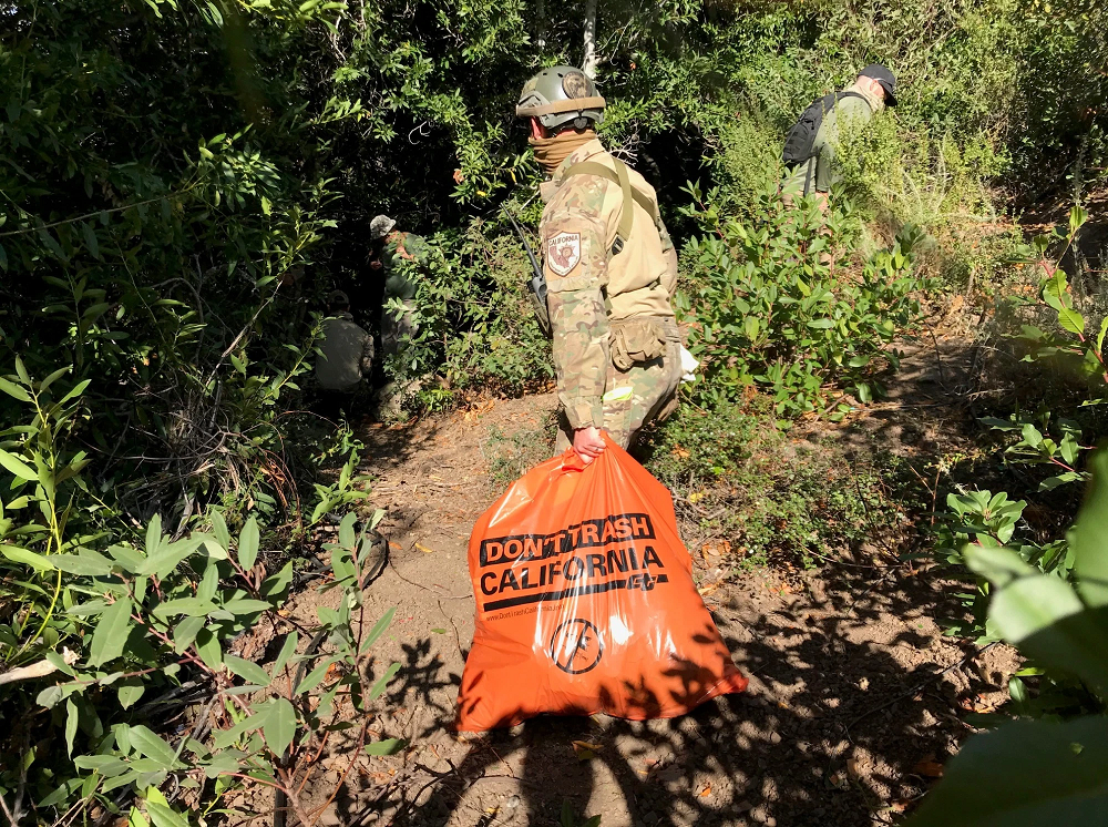 Wildlife officers were assisted by the California Department of Food and Agriculture on the ground and the National Guard’s 129th Rescue Wing Counterdrug Task Force, which provided air support for removing trash.