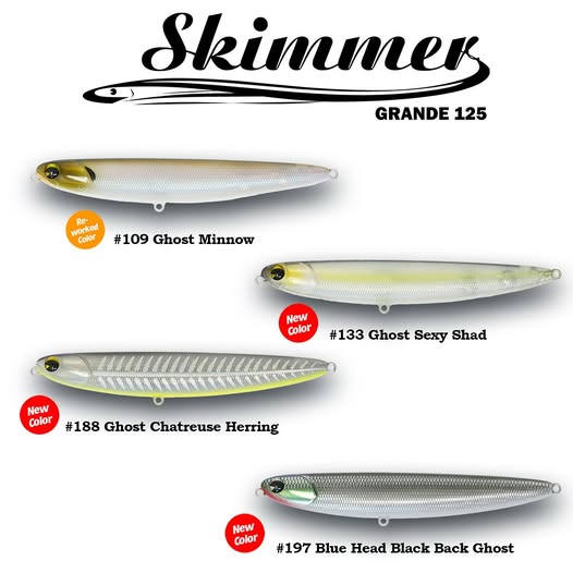 New colors for the Skimmer Grande 7/13/2025 The new colors for the Skimmer Grande @imalures -Specifications​- Length: 125 mm, 5in Weight: 17g, 5/8oz Type: Floating Hooks: #4