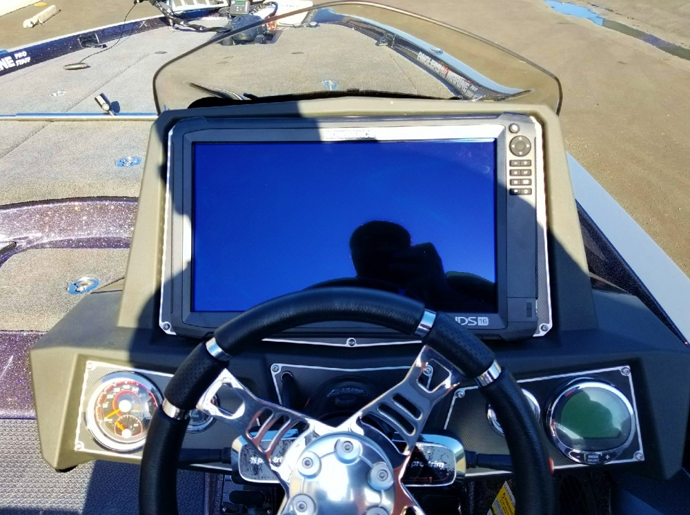“I have a Lowrance HDS-16 Carbon mounted in the dash of the console and have a 12 mounted up front,” says Grover.