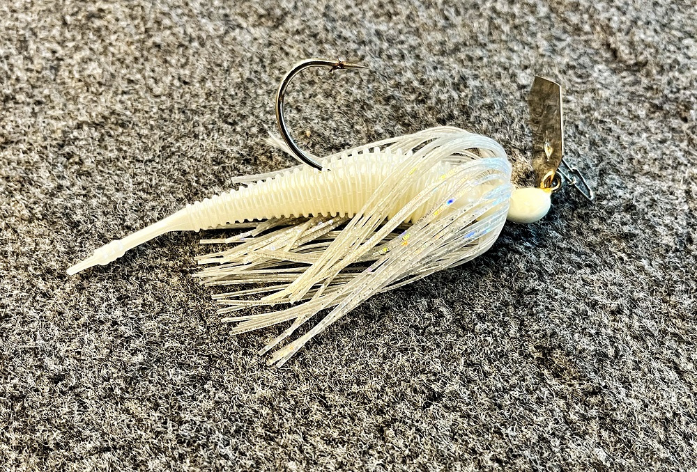 Like a Scrounger style jighead, the Chatterbait was designed to catch bass because of the action the blade of the jig provides, from the vibration, flash and then the erratic side-to-side action it delivers when retrieved. So again, this is an excellent situation where the Spunk Shad signs as a soft plastic trailer. The thicker, ribbed body of the bait gives it enough meat to rig up on a Chatterbait, but as the bait moves down to the tail section, the thin pintail provides the slightest bit of action to entice a bass into biting.