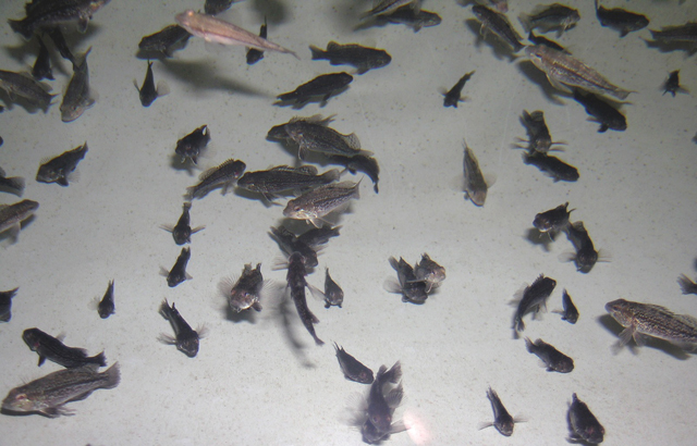 Photo: Juvenile black sea bass, Centropristis striata, in the tank at Milford Laboratory