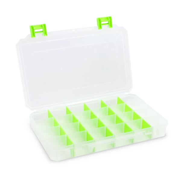 Lure Lock’s plastic utility box utilizes heavy duty clear and pure polypropylene plastic. These quality boxes feature easy-to-open green latches and come with easy snap-apart-dividers. The non-gel boxes come in three sizes LL1, LL2 and LL3 and are available in variations featuring one to four cavities depending on the size box.