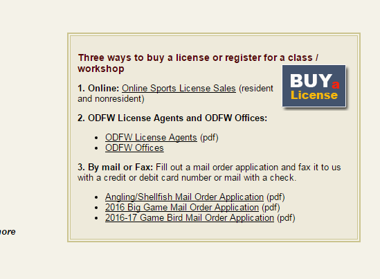 Licenses and tags can still be purchased at more than 500 businesses statewide and also at ODFW offices. These computer terminals used to sell licenses and tags at businesses and ODFW offices are separate from the online system.