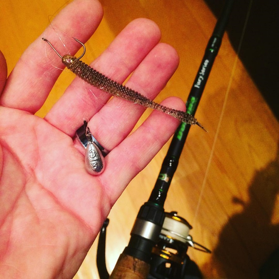 Mueller likes to fish small living rubber jigs on spinning tackle.