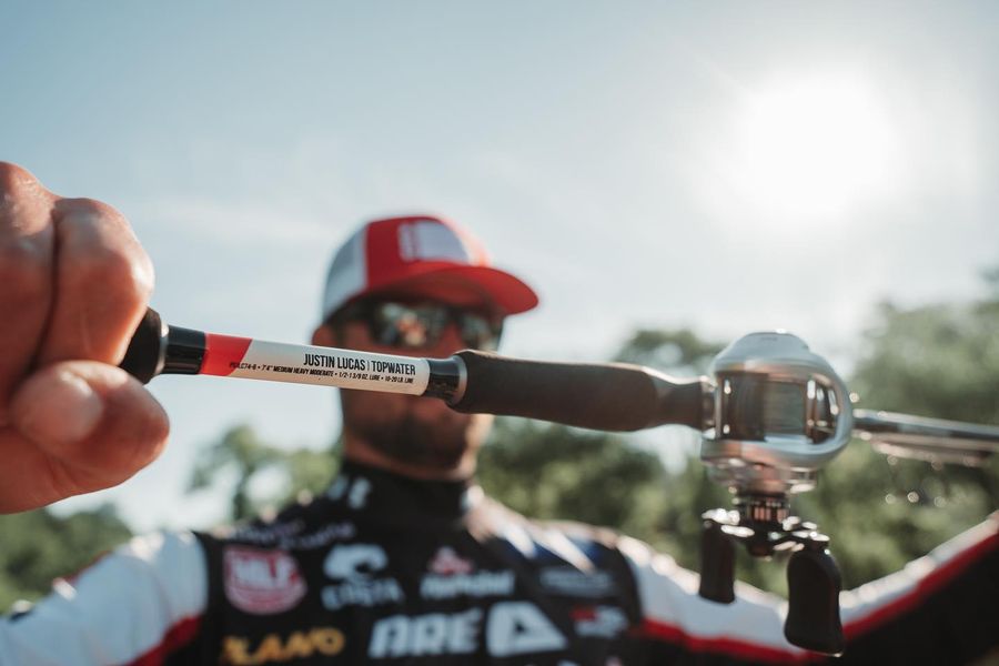 Built for topwater The @justinlucasbass Pro Series Topwater rod has the perfect length & action for long bomb casts, and easily walking the dog with walking baits, while allowing for a great hookup & landing ratio on every fish