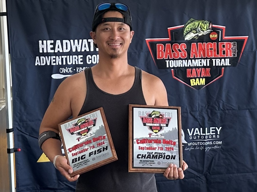 The final stop of the 2024 BAM Tournament Trail’s Kayak Series on the California Delta closed scales this weekend with Pua Yang of Elk Grove, Calif., leading the field of 32 anglers by more than 10-inches with an event total of 97.50”, which included the event’s Big Bass and his TourneyX documented Personal Best of 23.25”.