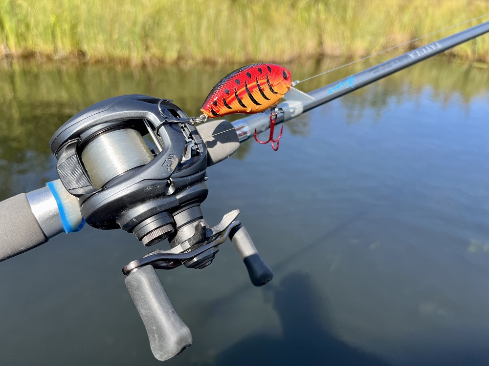 Another option Howell can see in play is a lipless crankbait when he's looking to cover water. "I throw that on my 7-foot, 2-inch medium-heavy Daiwa Tatula Elite 'Universal' rod," shared Howell. "It's got a nice parabolic bend, which you want for that bait. It's got punch, but soft enough to catch those fish hooked on trebles without ripping them out."