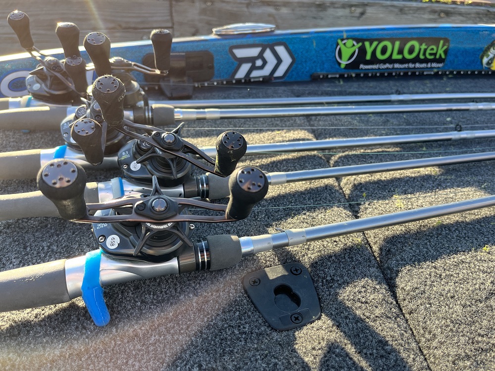 Another option is a combo of a bladed jig and spinnerbait. "Depending on how shallow they are, those two baits can be really good," he said. "I fish it on my 7-foot, 4-inch medium-heavy Daiwa Tatula Elite 'Big Topwater' rod," he said. "It was designed for topwaters but is great for those baits as well."
