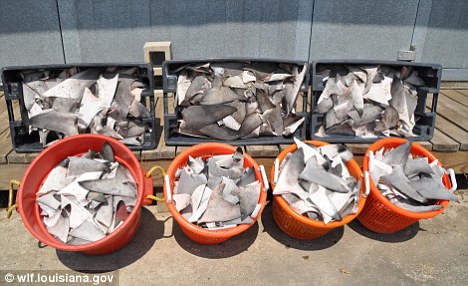 The 2,073 individual fins represent a total of 518 sharks possessed by the two fishermen bringing the total number of sharks possessed to 529. The daily commercial limit for sharks in Louisiana is 33 per vessel placing the two men 496 sharks over their daily limit.