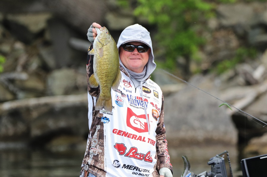 Besides shad, he's also looking for crawfish eaters and seeks out rocky areas where they live. "They'll get on those bluff banks with the big chunk rock with a little slide or shelf on them," he said. "Transition banks are also good, and a crawfish-colored crankbait is great. The Gravel Dawg is like the old-school Wiggle Wart, which is perfect for those banks, and that bite will only get better as it gets closer to spring."
