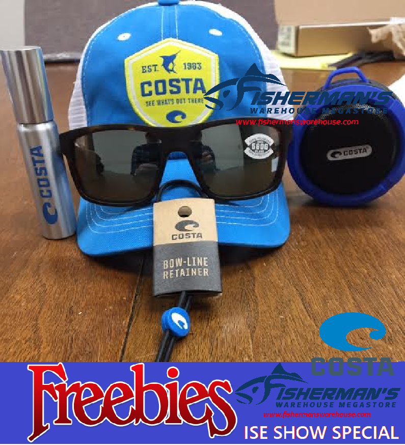 Purchase Costa Sunglasses, Get a Costa Bluetooth Speaker, Hat, Bow-Line Retainer and Glasses Cleaner | $120 Value #Freebie at #FishermansWarehouse ISE Booth #R3001