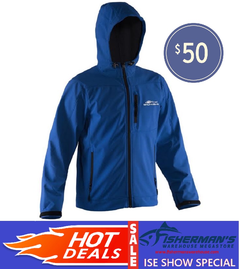 Grundens Midway Hooded Softshell Jacket $50, Reg.$119.99 at #FishermansWarehouse Booth #R3001 | Available in Blue & Red