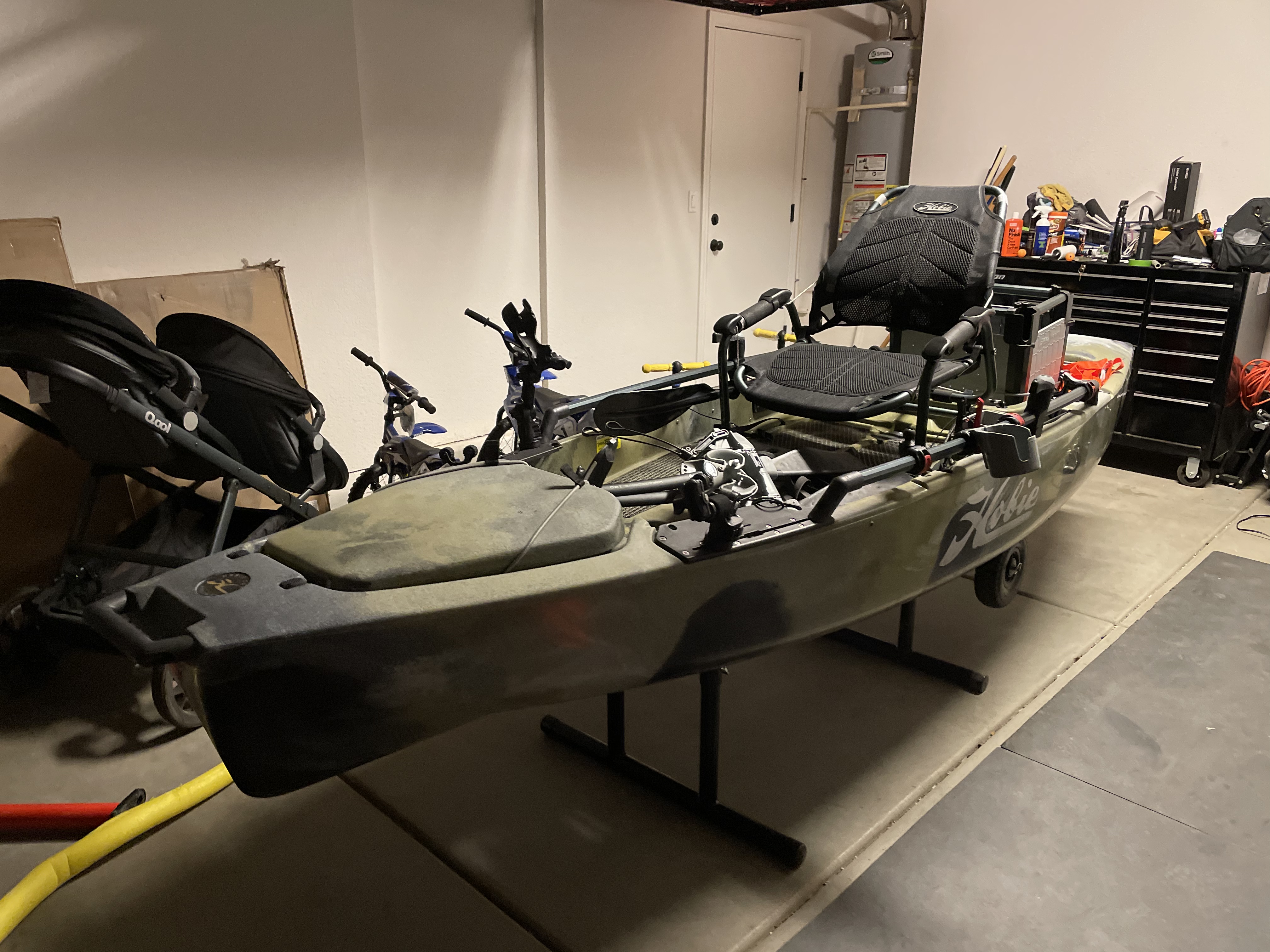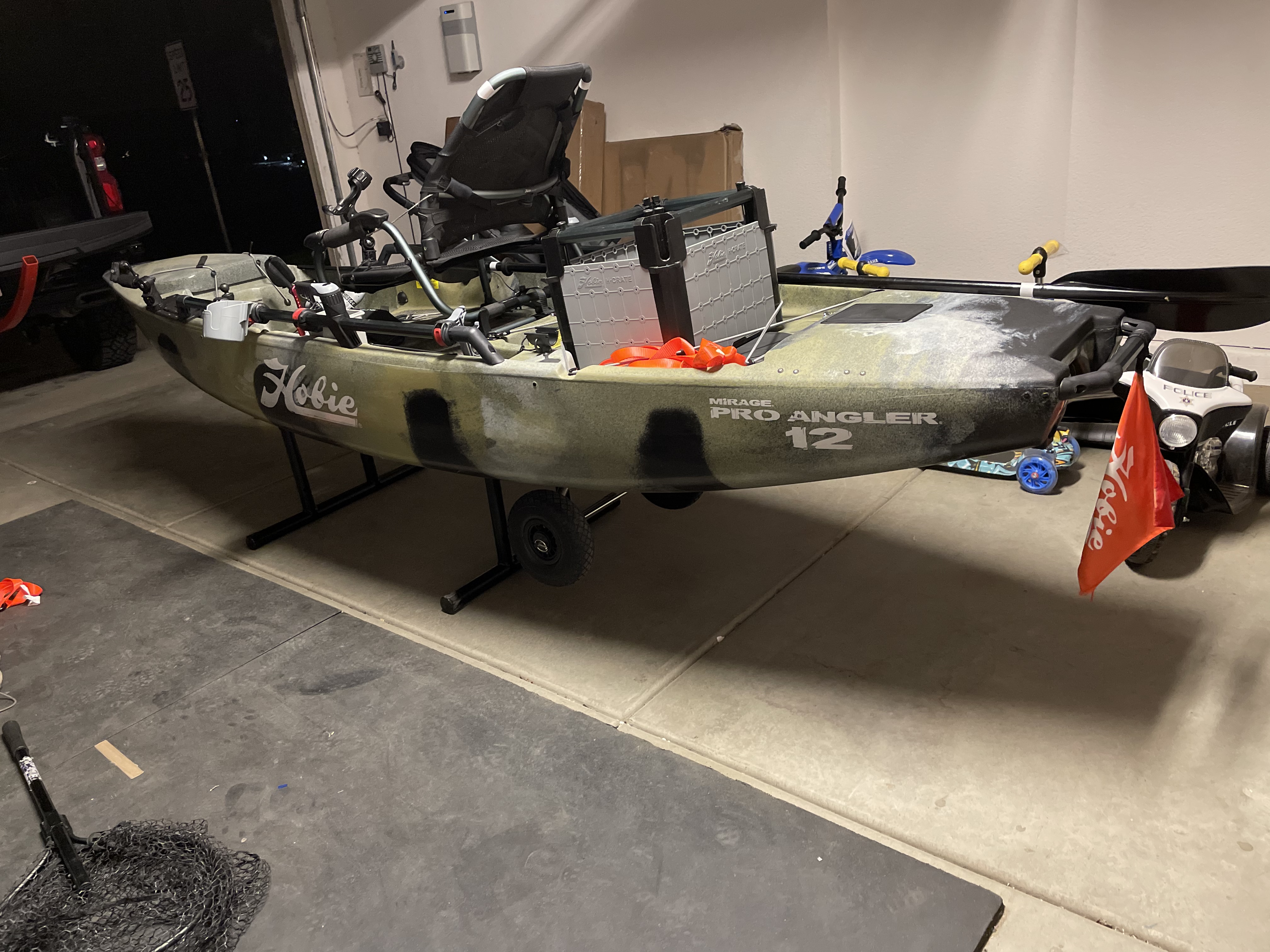 Hobie Pro Angler 12 2021 with turbo fins and mirage 180 drive. Comes set up with a Lowrance hook reveal 5, dolly, fish net, two ores, hobie H crate, cup holder, utility box holder, go pro adapter, fish net holder, stand to keep it off the ground while storing it and t-bone hitch extension to add stability and ease while loading and unloading. Hasn’t been in the water more than 10 times no damage and is in pristine condition. Price is firm.
