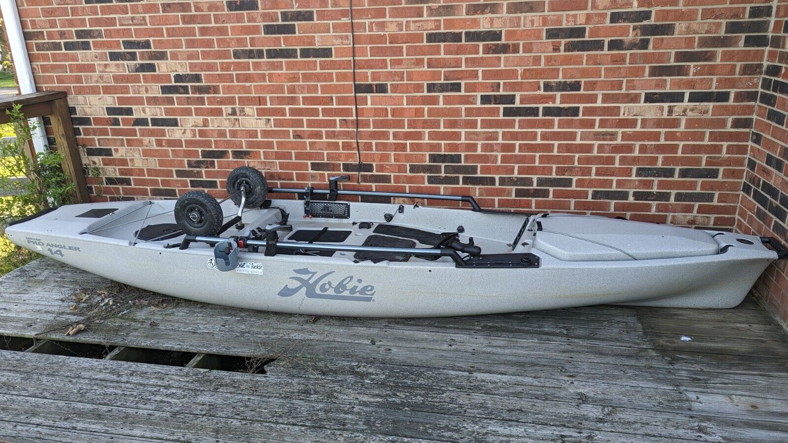 2022 Hobie Pro Angler 14 Kayak, comes with a 180 drive with kick up fins. Also comes with Hobie Wheels, Hobie Paddle, Hobie H-Crate and a Garmin 93SV Fish finder with the GT54 Transducer. Has some scratches on bottom from wear. Been on water 8-10 times. This is a great deal and will sell fast.