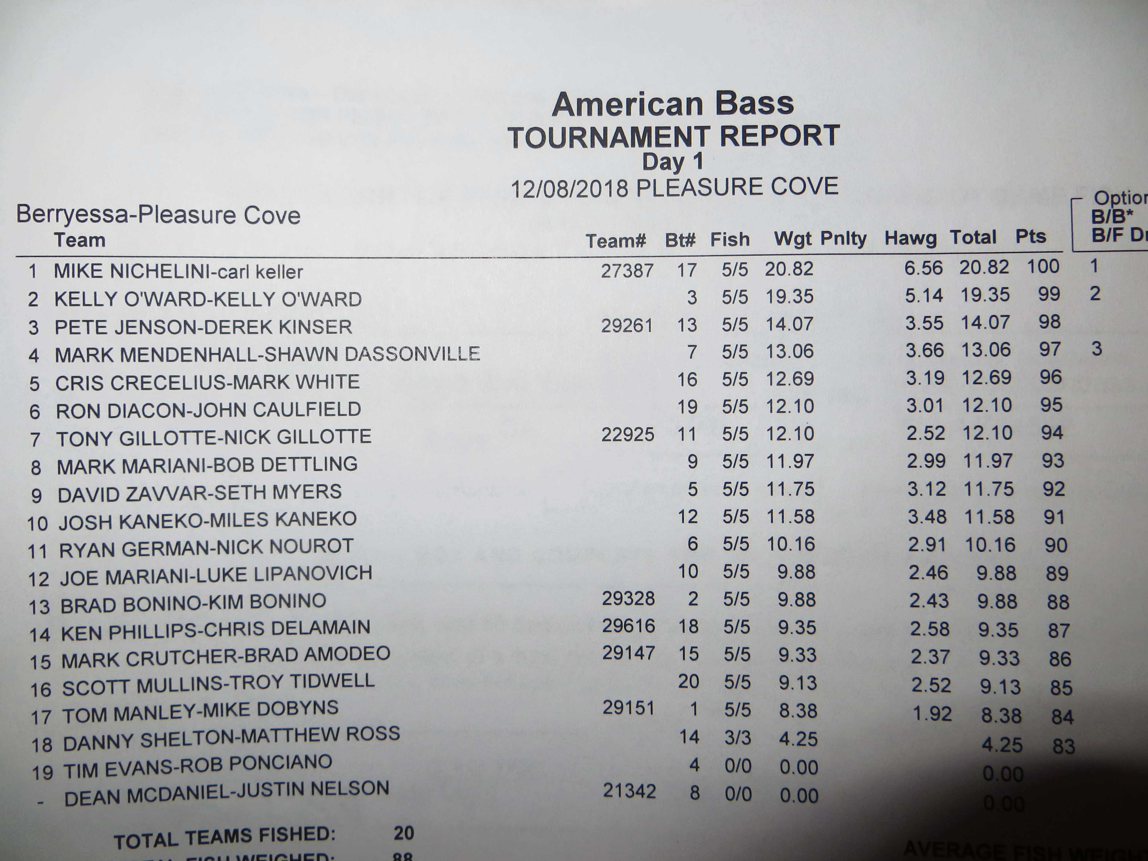 Re: AMERICAN BASS NAPA COUNTY REGION 12-8-18 Results