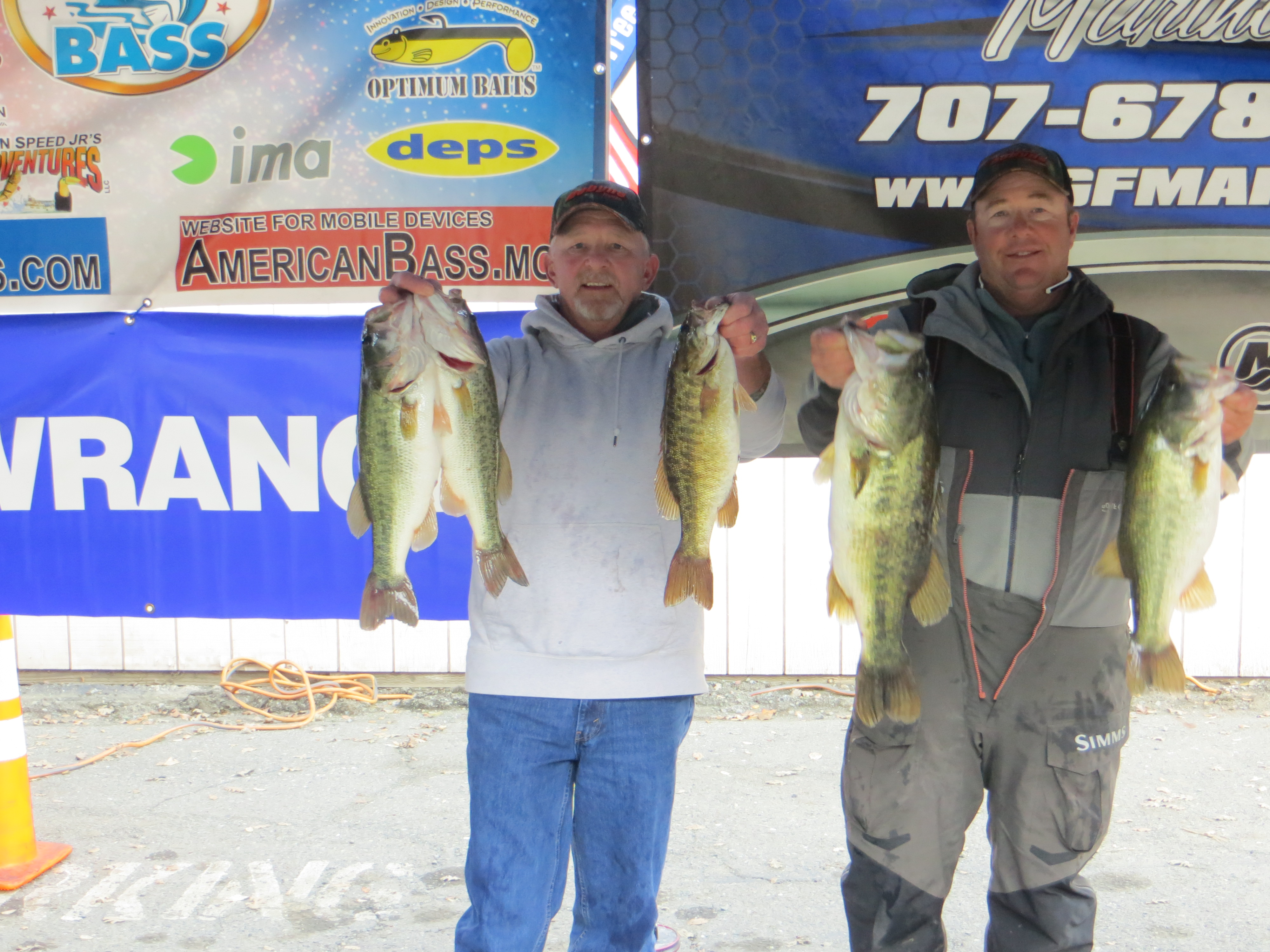 American Bass Napa County Region The Napa County Region officially Started, We had a great day with all the anglers new and old friends fishing and sharing the fun of this opener at Lake Berryessa. We want to thank all that attended and supported American Bass, Karen and Myself.. The winning Honors went to the team of Mike Nichelini and Carl Keller With a winning weight of 20.82 LBS. This was anchored alone with Big Fish of the day weighting in at 6.56 LBS. We are looking forward to a great season in this new region. Pleasure Cove is very much ready for our TOC next November, This resort will accommodate any of your lodging needs with great rates on camp sites or a cabin, Just let them know you are fishing American Bass. We want to wish all a very Happy and Safe Christmas and great new year. Good Fishing Guys . Thank You All again.