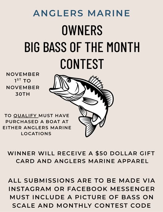 The monthly contest code will be posted on the 1st of each month on Anglers Marine’s social media pages.