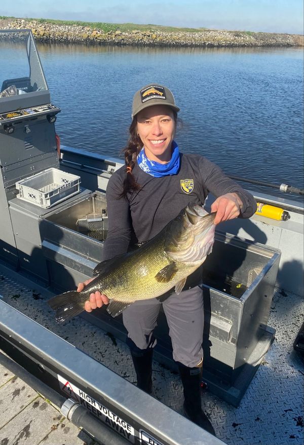The CDFW staff were on the Delta, collecting fish that were on display at the show tanks at the International Sportsmen’s Exposition (ISE) Sacramento. This largemouth bass was their biggest catch of the day! At ISE Sacramento, it’s common to see a big-name angler cast into the 30’ tank filled with a community of warm water fish species as they are trying to demonstrate the superiority of their terminal tackle. What most show attendees don’t realize is that CDFW collects the fish in the tanks, and then returns them back to where they were caught after the show concludes.