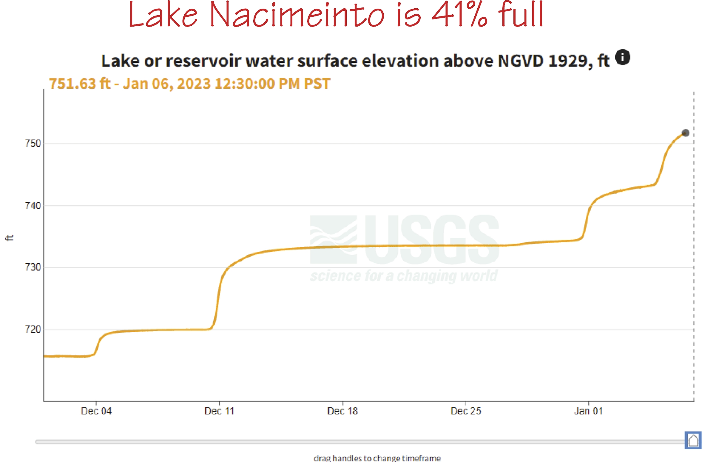 Nacimiento is now 41% full and still rising, coming up 35 feet!