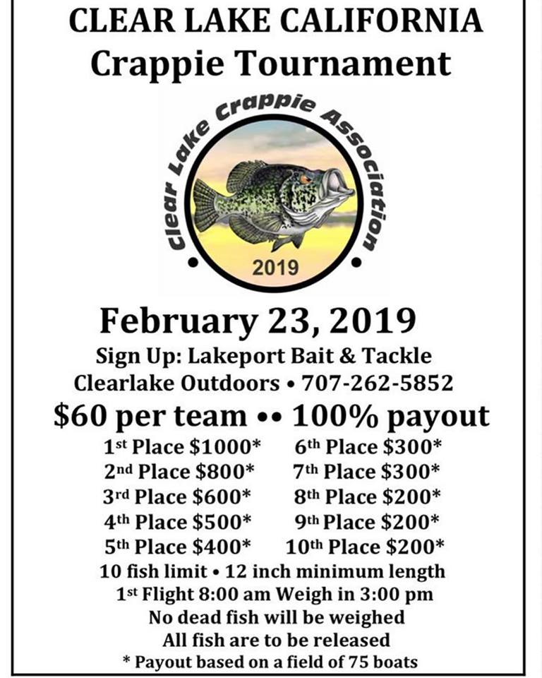Just in time for the Clear Lake Crappie Associations second competition of the season. Lakeport Bait & Tackle is hosting our first crappie fishing clinic. Ed will be discussing techniques, equipment and how to locate fish. Don't miss out on this valuable information from one of Clear Lakes veteran fishing guides.