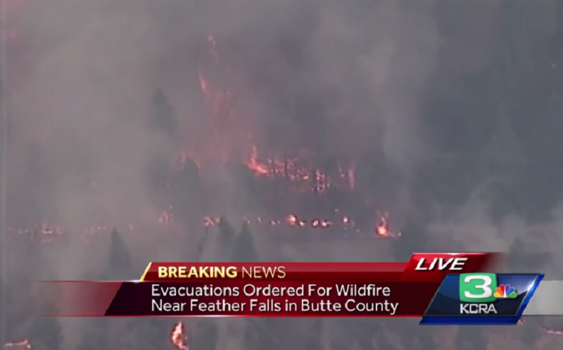 Mandatory evacuations are in place for residents on Ponderosa Way and Lumpkin Road from Lake View Terrace to Feather Falls Fire Station 51, and for people on Lumpkin Road from Forbestown Road to the community of Feather Falls. An evacuation warning was issued for people on Lumpkin Road from the Enterprise Bridge to Lake View Terrace.