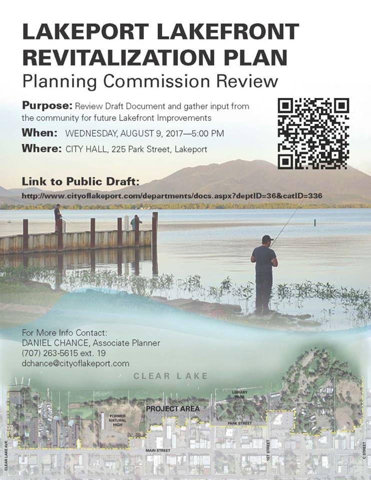 Our Planning Commission will hold a Public Hearing this evening (Wednesday 8/9) at 5 pm to review and discuss the Final Draft of the Lakefront Revitalization Plan. We're seeking input from our residents!