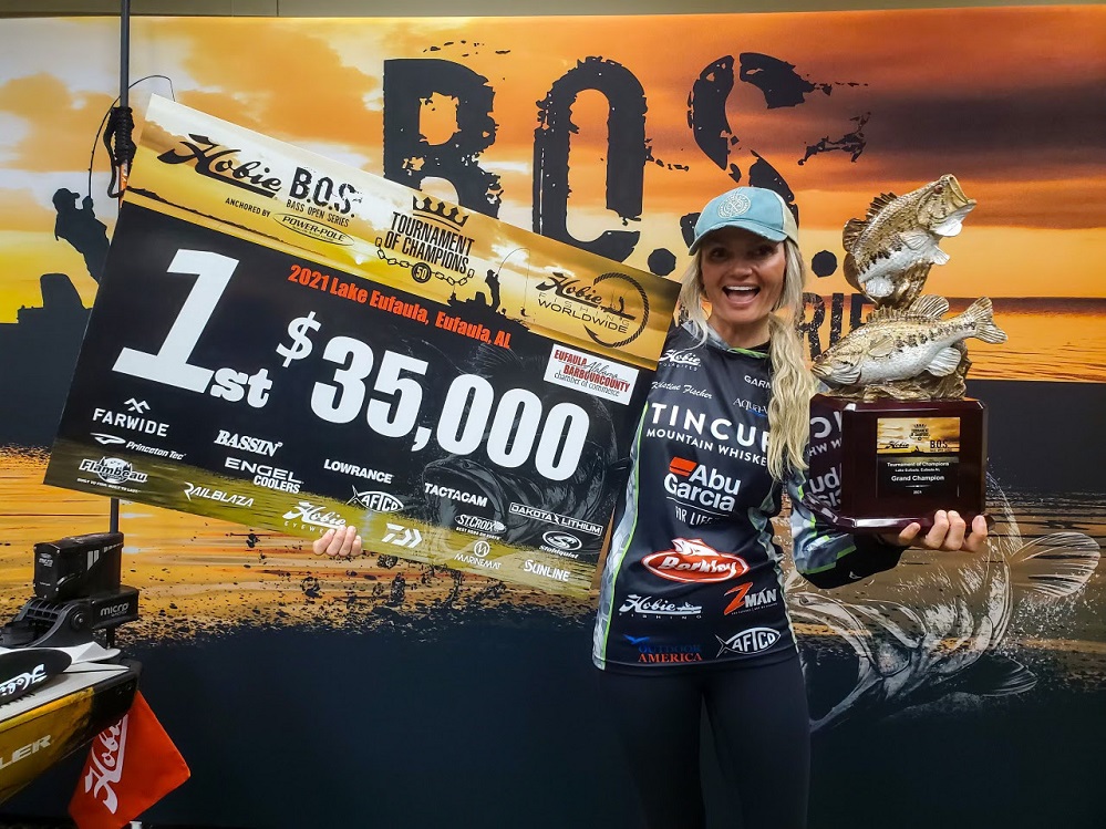 Abu Garcia and Fenwick Pro, Kristine Fischer, takes the crown and $35,000 on Lake Eufala, Alabama for the Hobie BOS Tournament of Champions.