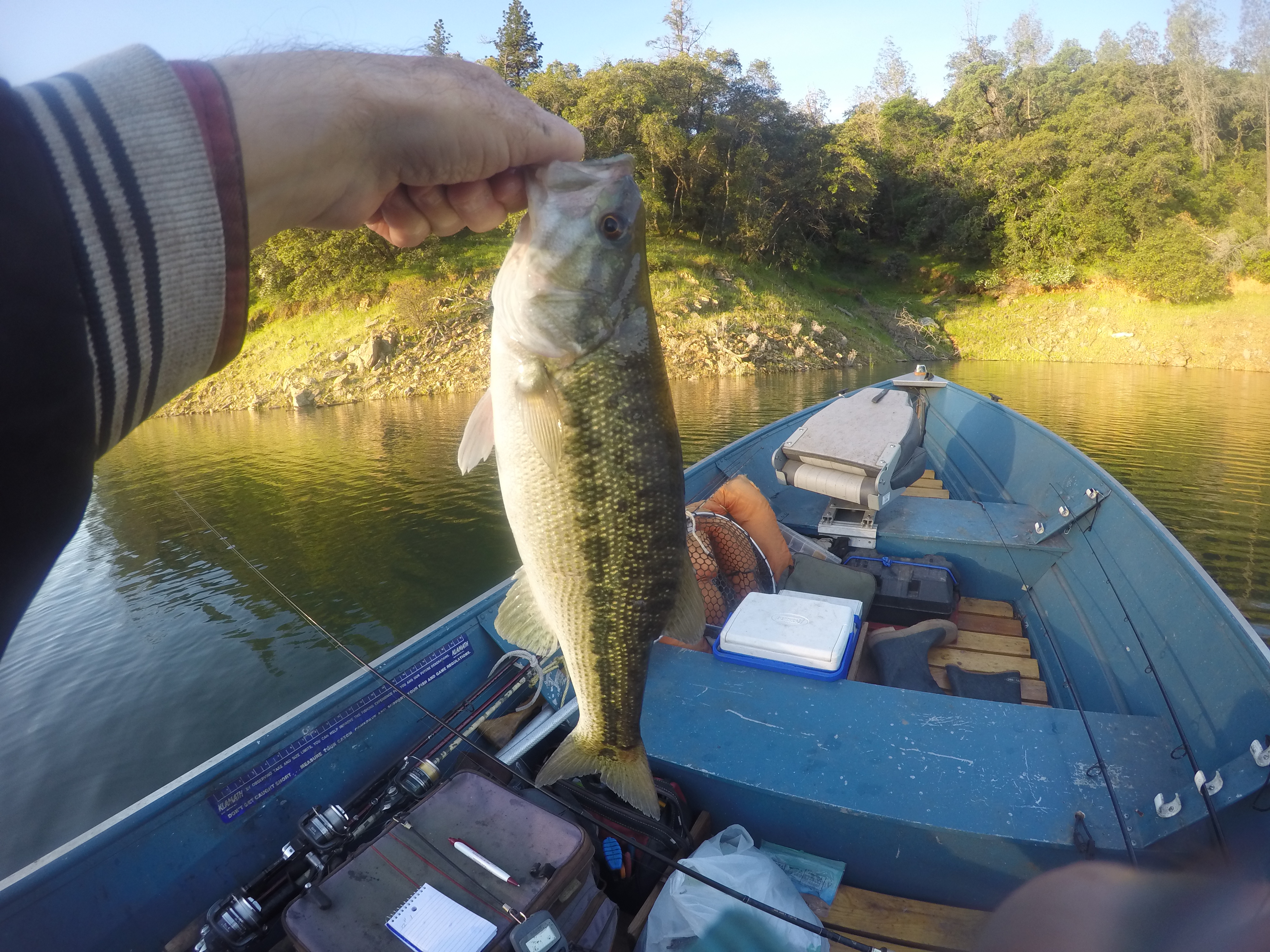 Launched at 6:30am at Lime saddle, stopped fishing about 10:30 am. Fished the west fork area out in the Nelson bar area. Damn, lots and lots of wood in this general area, be careful. Fished some old spots used to fish a few years ago and found fish at those locations. About half the fish on wacky weightless Senko's, the other half on roboworms, texas rigs. Found the better fish came from the senko's, the roboworms got much smaller fish today, a couple barely big enough to be fish. Managed just 18 fish today, largest at 14 1/2" with the rest 10-14". Water looked lousy in this area, much nicer in the middle fork. Seeing lots of carp in shallows, must be spawn time for them or they like eating the green growth that went under water.