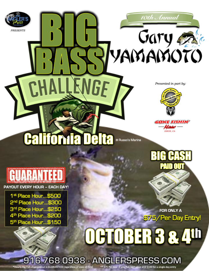 BETHEL ISLAND, Ca - If you simply LOVE to fish for bass, and want to do it in a fun, yet competitive environment – with a chance to win lots of cash, then don't miss out on the 10th anniversary of the Yamamoto Big Bass Challenge event coming to the California Delta - at Russo's Marina, October 3rd and 4th!