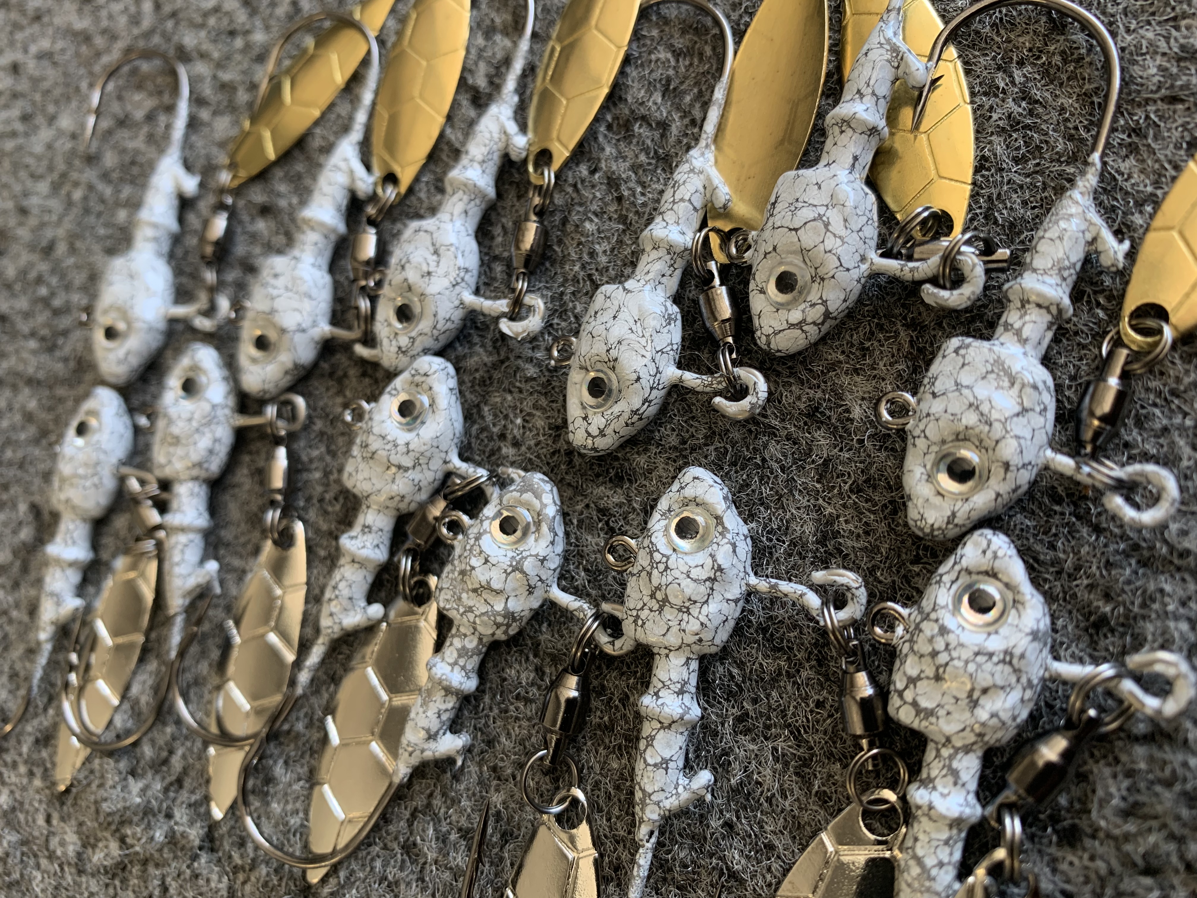 1/8 & 1/4oz are made with size 3/0 Hooks