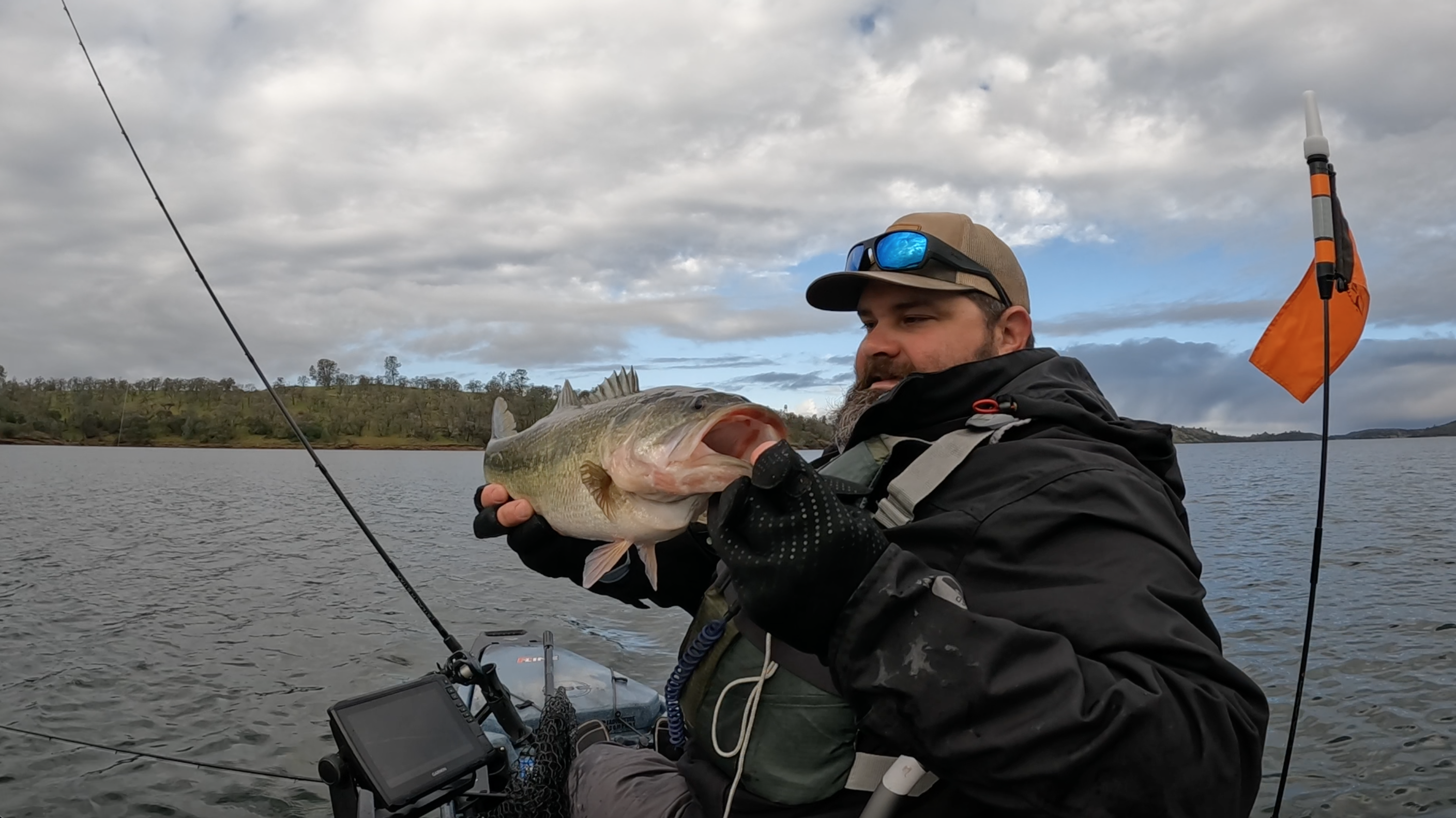 The weather was another cold rainy day that brought winds up to 25 miles per hour. Air temperatures ranged from high 30’s to high 40’s, water temperatures ranged from 46 to 48 degrees. Let us just say, winter is still here, and spring is not around the corner. After battling crazy weather, James Croco won the Wild West Bass Trail Kayak Series at Lake Pardee on March 3rd with a respectful 90.75”, which weighed around 17 pounds. Croco located a long tapering point that was around 100 yards long. After an insanely rough hour long run to that point, he found his first fish in the 25-foot range. He stated, “I saw a giant mark way off the end of the point with his Garmin Panopitx, about 80 feet from me.” Croco tossed his ¾ ounce Tour level finesse Dirty Jig in the green pumpkin color with a X Zone Muscle Back finesse craw trailer to the fish. Slowly, he dragged the jig with long pauses to entice a 19.50” largemouth bass that weighed around 5 pounds, not a bad way to start his morning. (photo above) Croco fished a few other points in the area, catching two more fish. He then decided to return to his starting location. He drifted over to the end of the point going with the wind, catching several more fish. His better fish were deep in the 30-to-60-foot range, this was his key to finding better size fish. James noted that he caught a total of 9 fish during the tournament and two of his fish came on a X Zone guppy head paired with a 2.8” Keitch. Croco said, “The wind changed directions, then it started to hell, I had no cell service, so I headed back to the ramp three hours early.” After an hour and a half without a bite, he was starting to regret his decision to leave so early. He stopped at a spot that he fished in the past, third cast to the point, he culled 1.25”. James declared, “This was the fish that secured the victory for me.” His decision to leave early was the right one. James appreciates all the support from his sponsors Headwaters Adventure, Bioenno Power Batteries, HOOK’D Specialized exhaust and automotive, Gregory water systems, PLine TKO tungsten, Nichols Lures, Dirty Jigs, The Rod Glove, and X Zone.