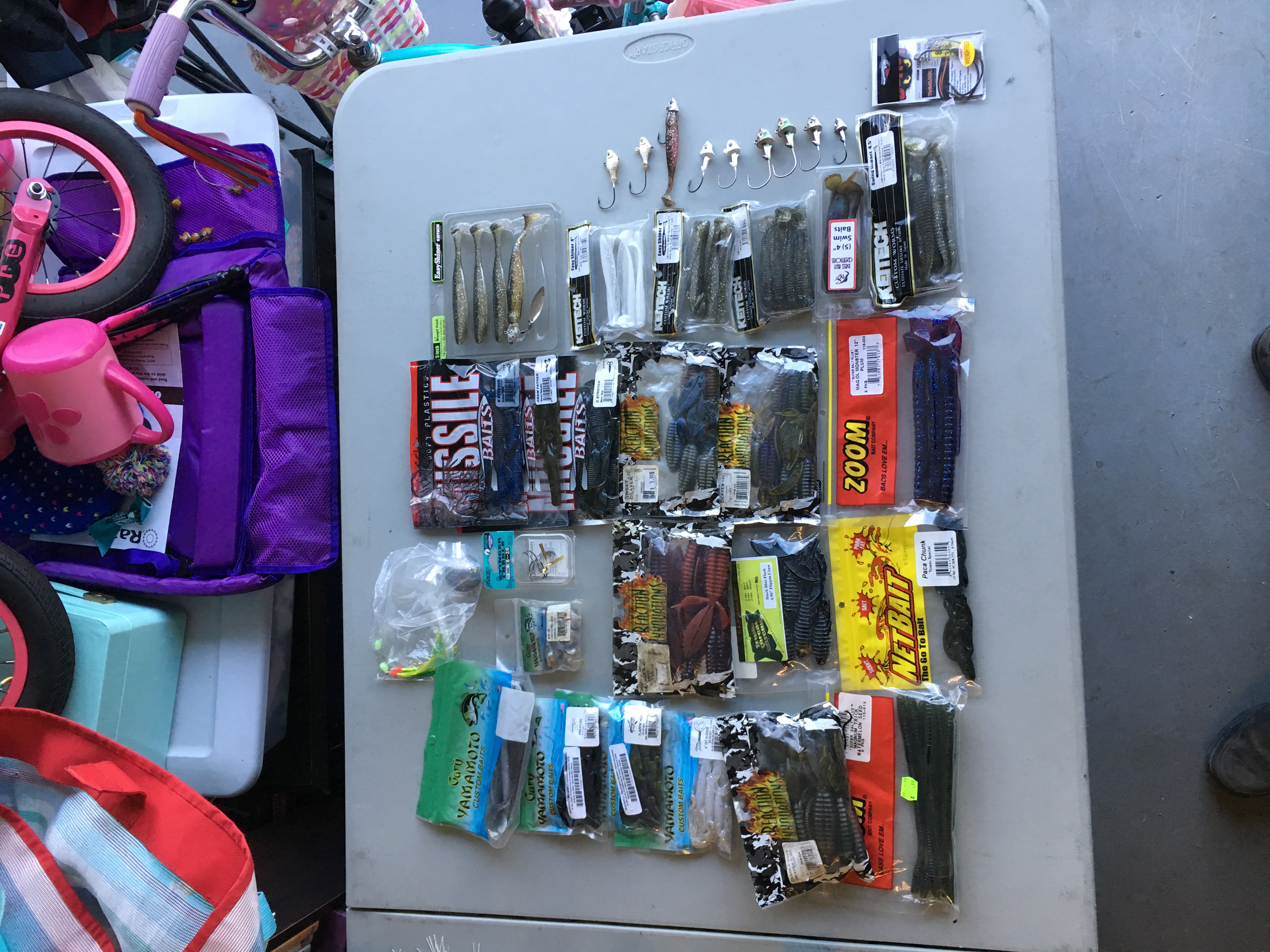 SOLD - Mostly new product a couple of the swimbaits jig heads are used ( the two white ones toward the top in the picture). Swimbaits heads are revenge.