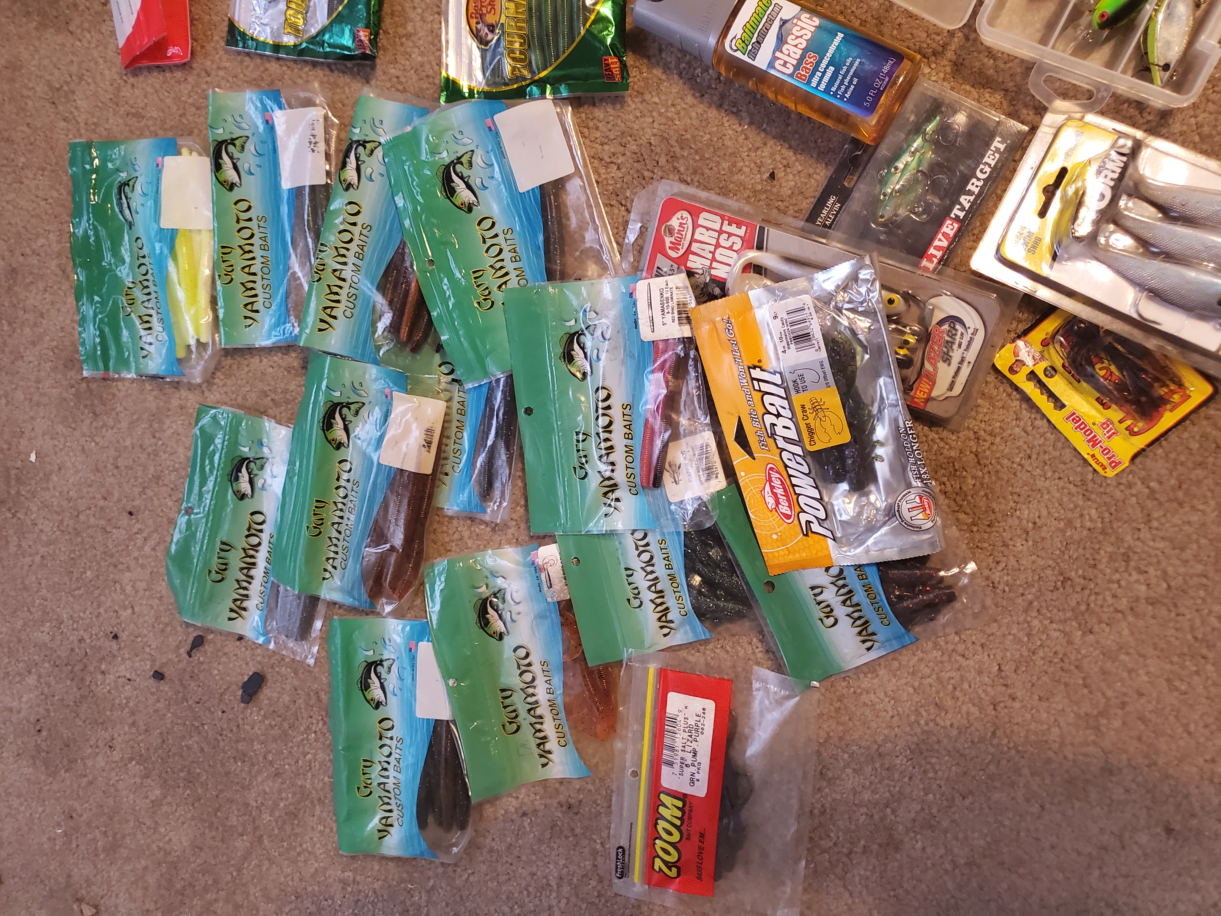 sam1234 wrote:Have 40 packs of soft plastics, 14 are senkos, and miscellaneous tackle pictured, Also included is 3 brand new rods.