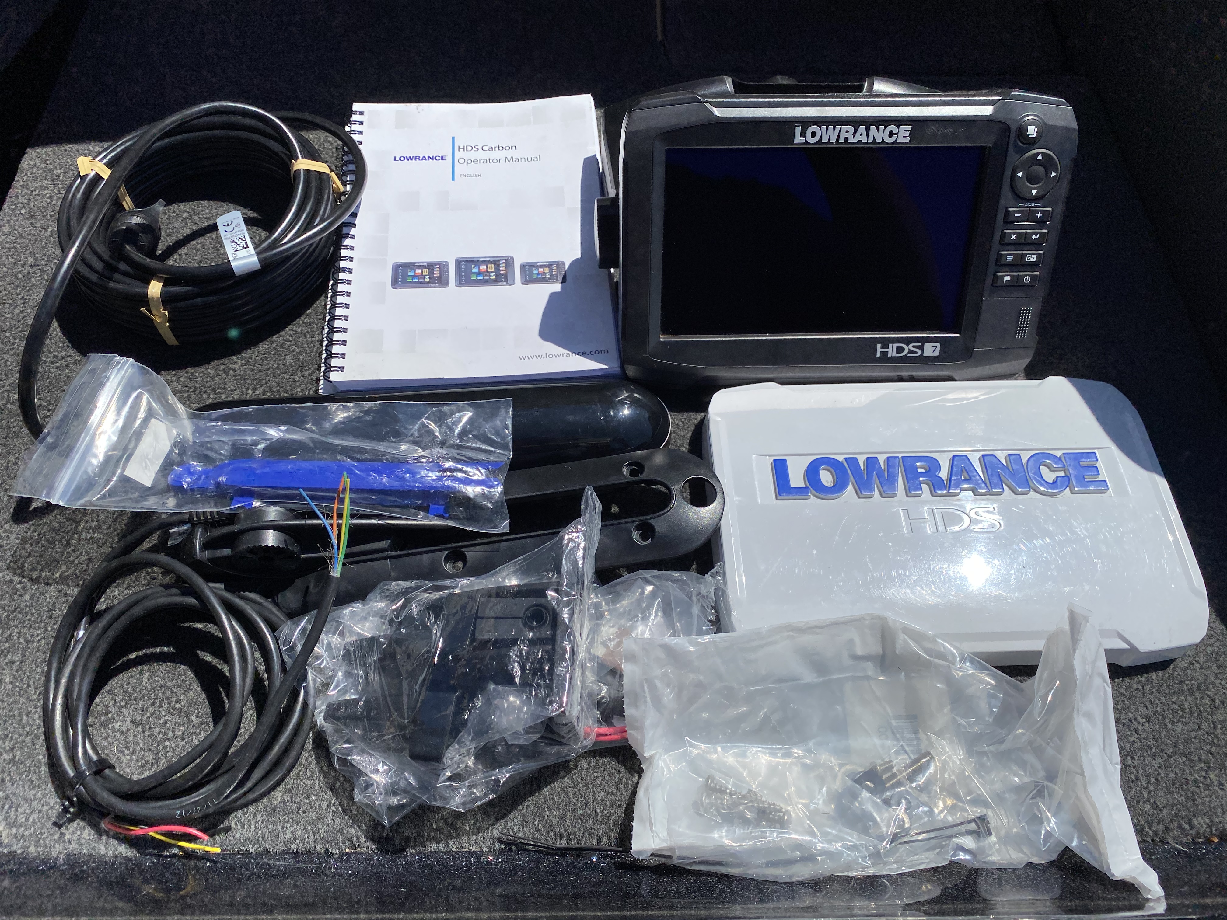 SOLD Lowrance Carbon 7 with mount bracket, knobs, sun cover, power cable, manuel and a brand new total scan transducer.