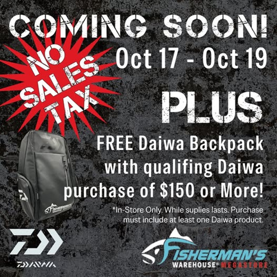Mark the calendars—NO SALES TAX is coming October 17-October 19 at Fisherman’s Warehouse Megastore!