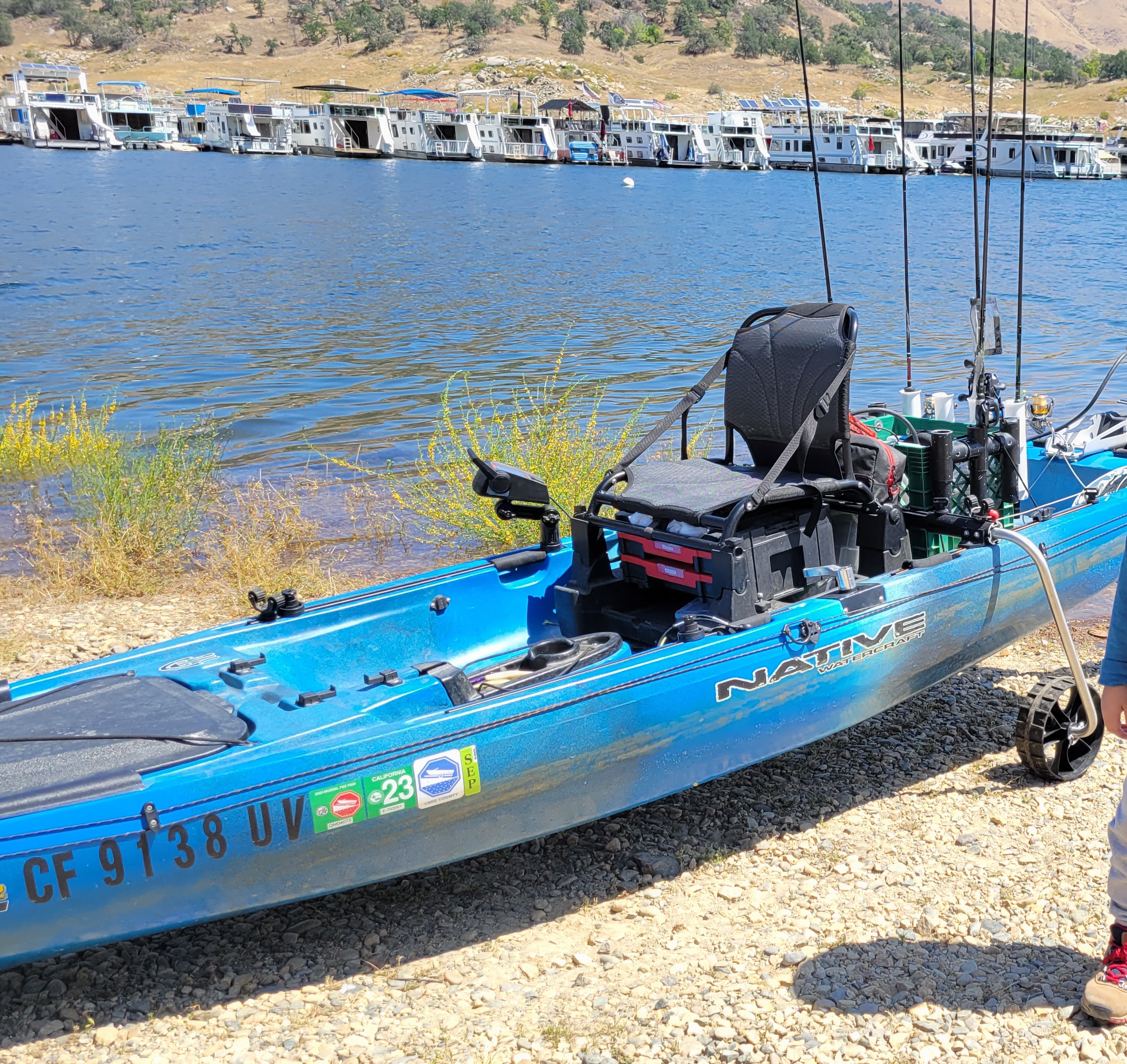 Native Titan 12 with Torqeedo 1103ac (big motor 3hp). Includes 7" Helix Mega with side imaging, 30ah battery, Yak Attack Visi Light, navigation lights, ketch board, net, under seat storage, boonedox landing gear, boonedox rudder, NLD aluminum handle, paddle, storage bucket. Kayak will do 5.8 in slick water. This is a tournament ready kayak. Located in Madera, CA.