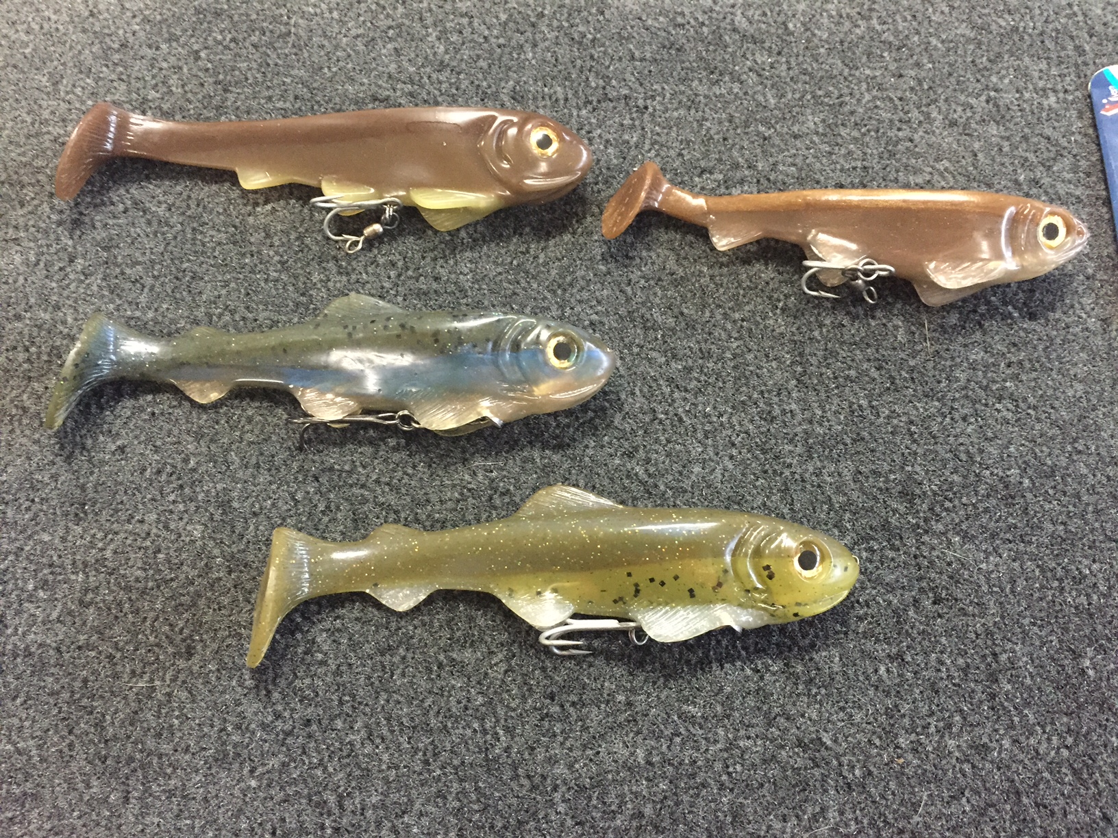 I have 2 Osprey Full body 7” swim baits for sale, Light Hitch and dark Hitch. These are not line through but have a harness. I also have 1 each Osprey Line through 6” and 7” both in a carp color. Asking $10 per bait.