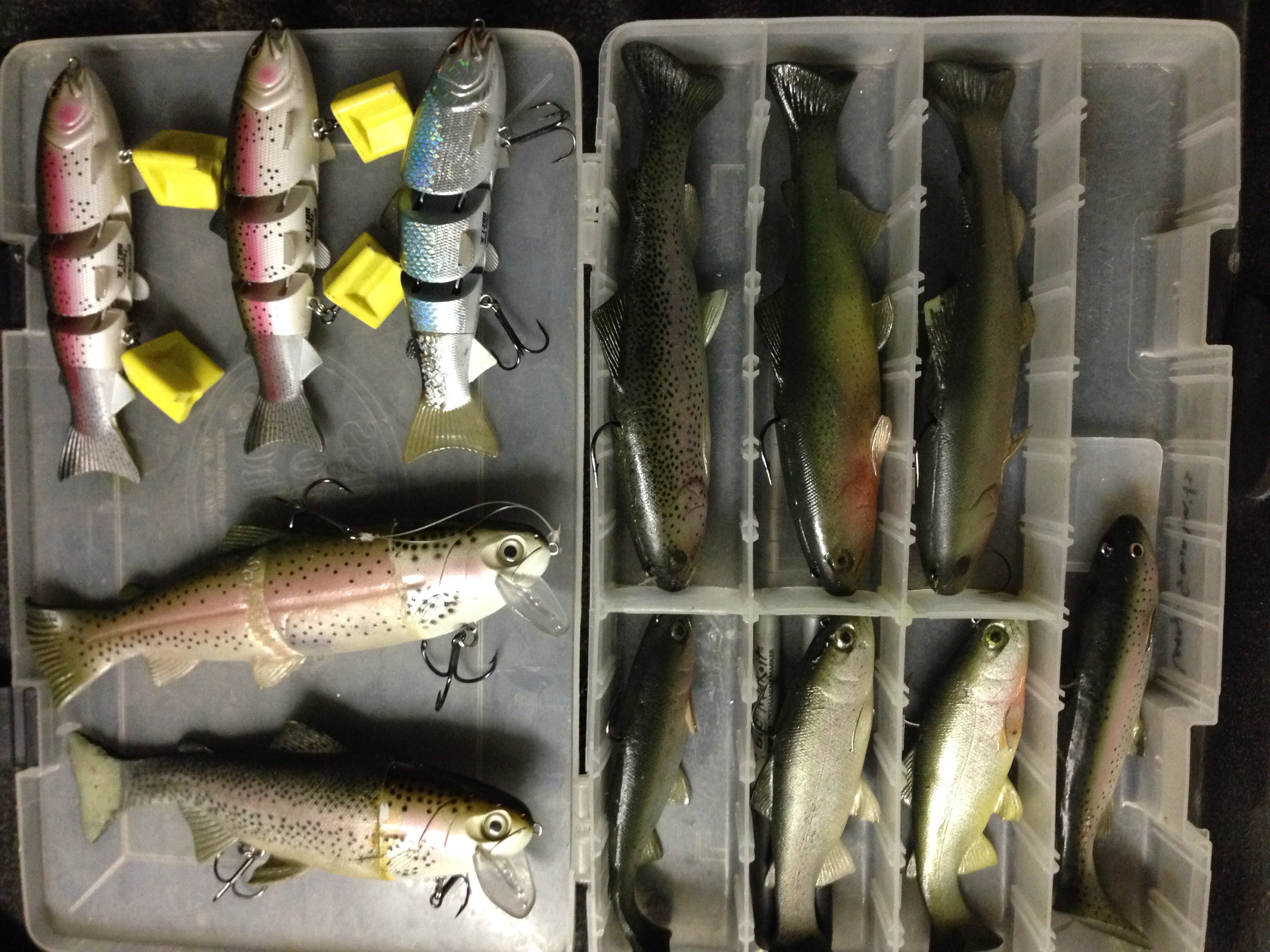 6" spro bbz-1 jr (x2) slow sink 1 rainbow trout, blueback herring