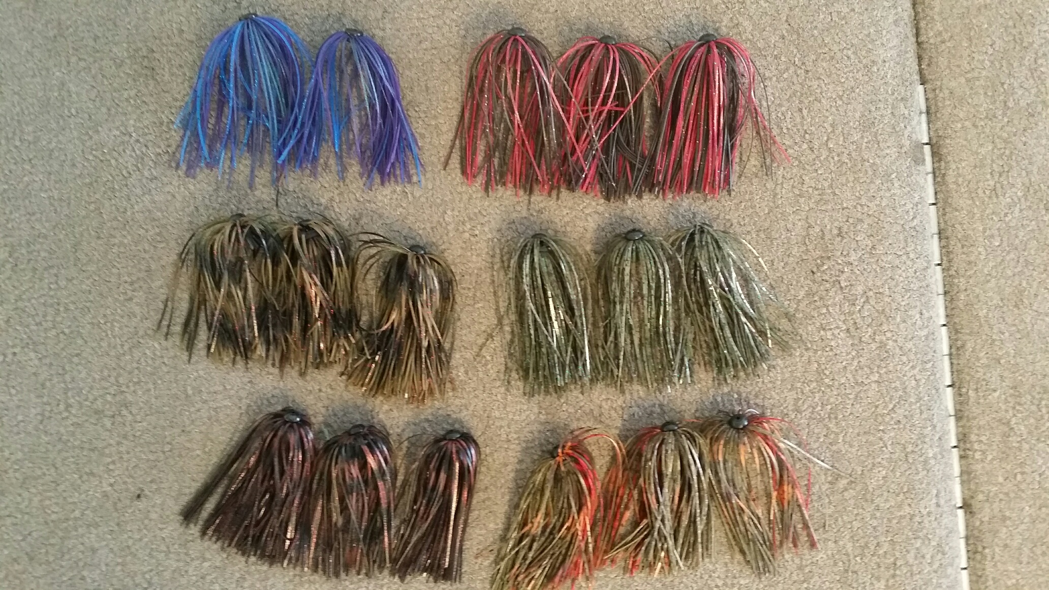 1 of the colors are Gambler KO Skirts the other 5 colors are made by Real Deal Custom Tackle. Bluegill and Craw patterns perfect for Delta and Clear Lake.