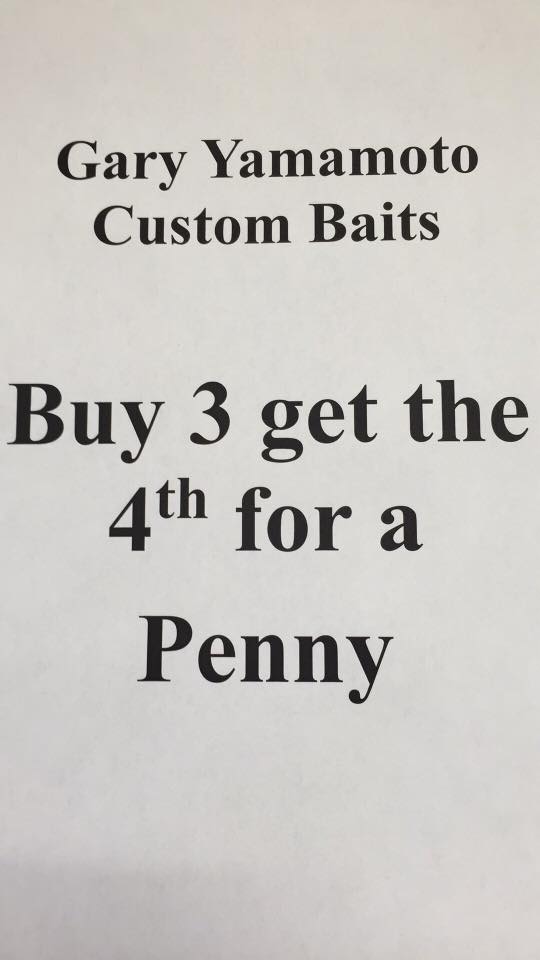 This is for all four locations including online, however you must call before placing your order. The folks at Yamamoto Baits were kind enough to donate a few custom jackets to raffle off at the end of the sale. The jackets can be seen at each location.