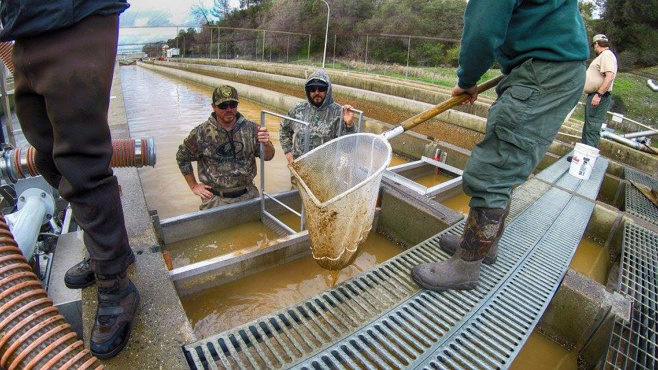 CDFW is trying to make the best out of a tough situation by evacuating juvenile salmon from the Feather River Hatchery (just downstream from the Oroville Dam). We have successfully relocated 100% of the spring run Chinook (2 million juveniles) and another 3 million juvenile fall run to a separate location. Staff and engineers have rigged a system of pumps, pipes and generators and a sediment pond to filter the water enough in hopes of keeping two raceways operational enough to support fish. Staff also are using municipal water from a fire hydrant, treated through charcoal filters, to try to keep about one million steelhead trout eggs and fry alive in the hatchery building.