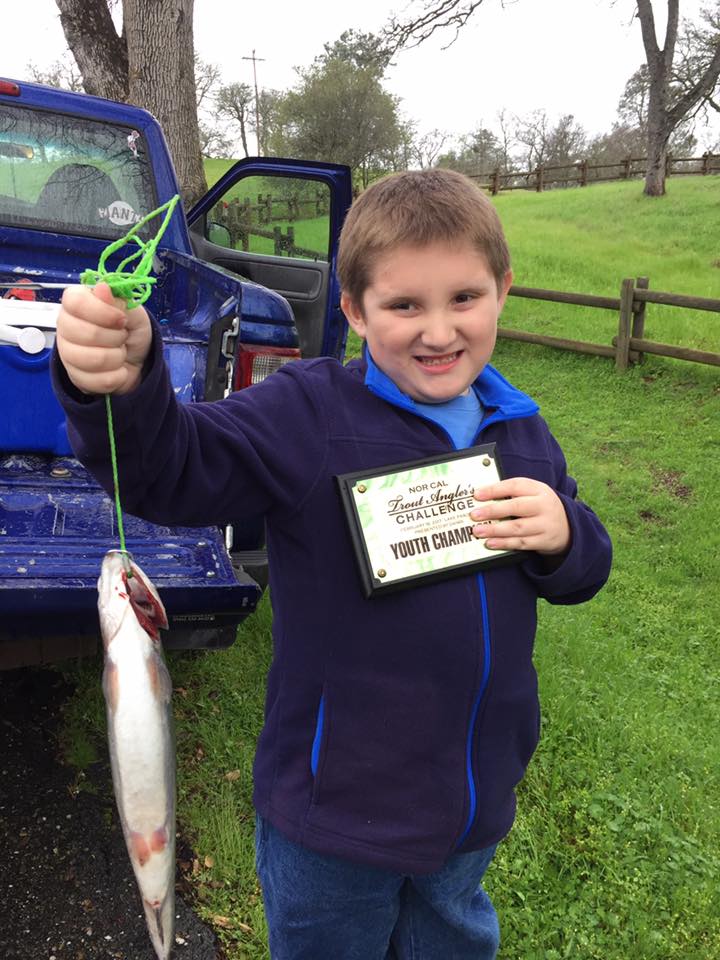 NorCal Trout Angler's Challenge tournament was held here today and this little man won the youth division. Joey Hill from North Highlands won with this 1.97 lb trout he caught using a gulp trout worm. Well done Joey!